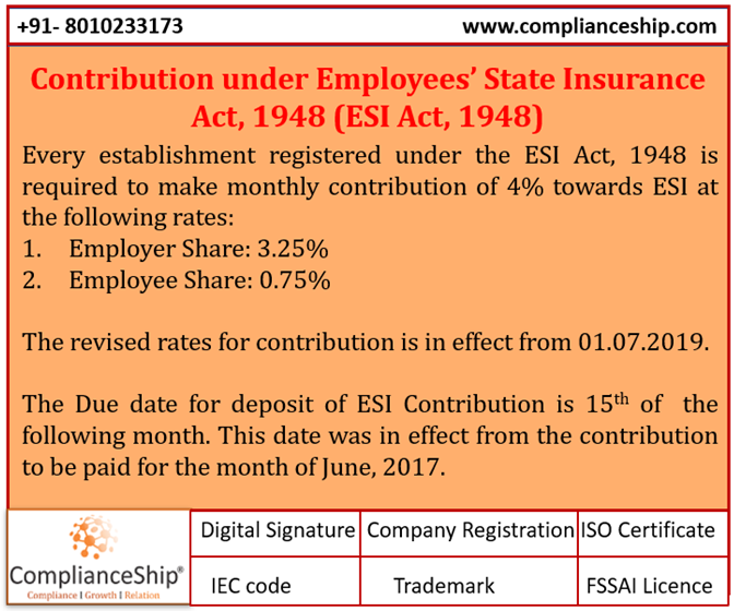 Contribution under Employees’ State Insurance Act, 1948 (ESI Act, 1948) April 10, 2020 /Posted byC0mpliance-Ship / 2886 / 0 Tags: compliance, contribution, duedateofreturn, ESI, esicontribution, esimonthlycontribution, esireturn, monthlyesicontribution, revisedcontribution Share Post Twitter Facebook VK Pinterest Mail to friend Linkedin Whatsapp Skype Benefits available under Emplo... CONVERSION OF A PUBLIC LIMITED... Related posts Benefits available under Employees’ State Insurance Act, 1948 (ESI Act, 1948) 0 Continue reading Applicability of Employees State Insurance Act, 1948 0 Registration under ESI Continue reading