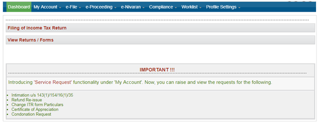 3. Mention your User ID i.e. your PAN No., password and the captcha code for successfully log –in on the webpage. Below mention page will be shown thereafter.